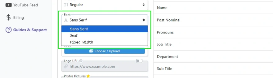 The font family options we provide include the following (notice that the fonts bellow will look different on different devices and browsers):