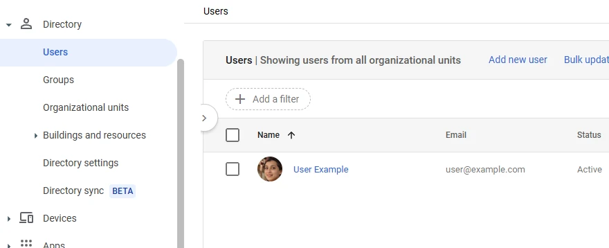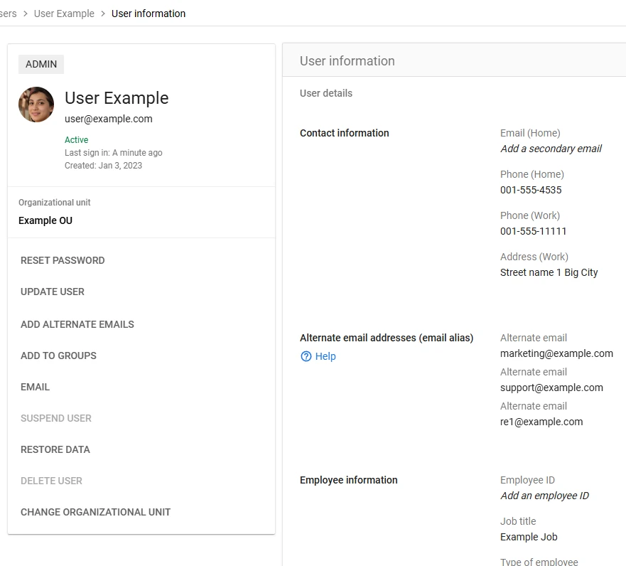 To change the user information on Google Workspace, log in to your Google Workspace account, and under Directory -> Users choose the user you wish to update.