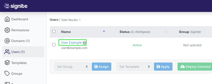 Note: User information edited in Signite will be overwritten by the Synchronize & Deploy All Data option in the drop menu. In order to keep the information you’ve entered in Signite when syncing your domain, use the Synchronize Users option instead.