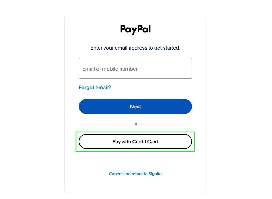 Some issues may occur during the payment process, due to errors or usage block on the credit companies’ end, rather than an error on Signite’s.
