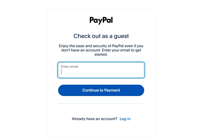 The PayPal link doesn’t require that you log in to your PayPal account, and gives you the option to purchase via credit card instead.