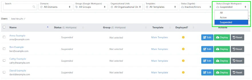 After suspending the user on Google Workspace, make sure the status is set before syncing your users with Signite.